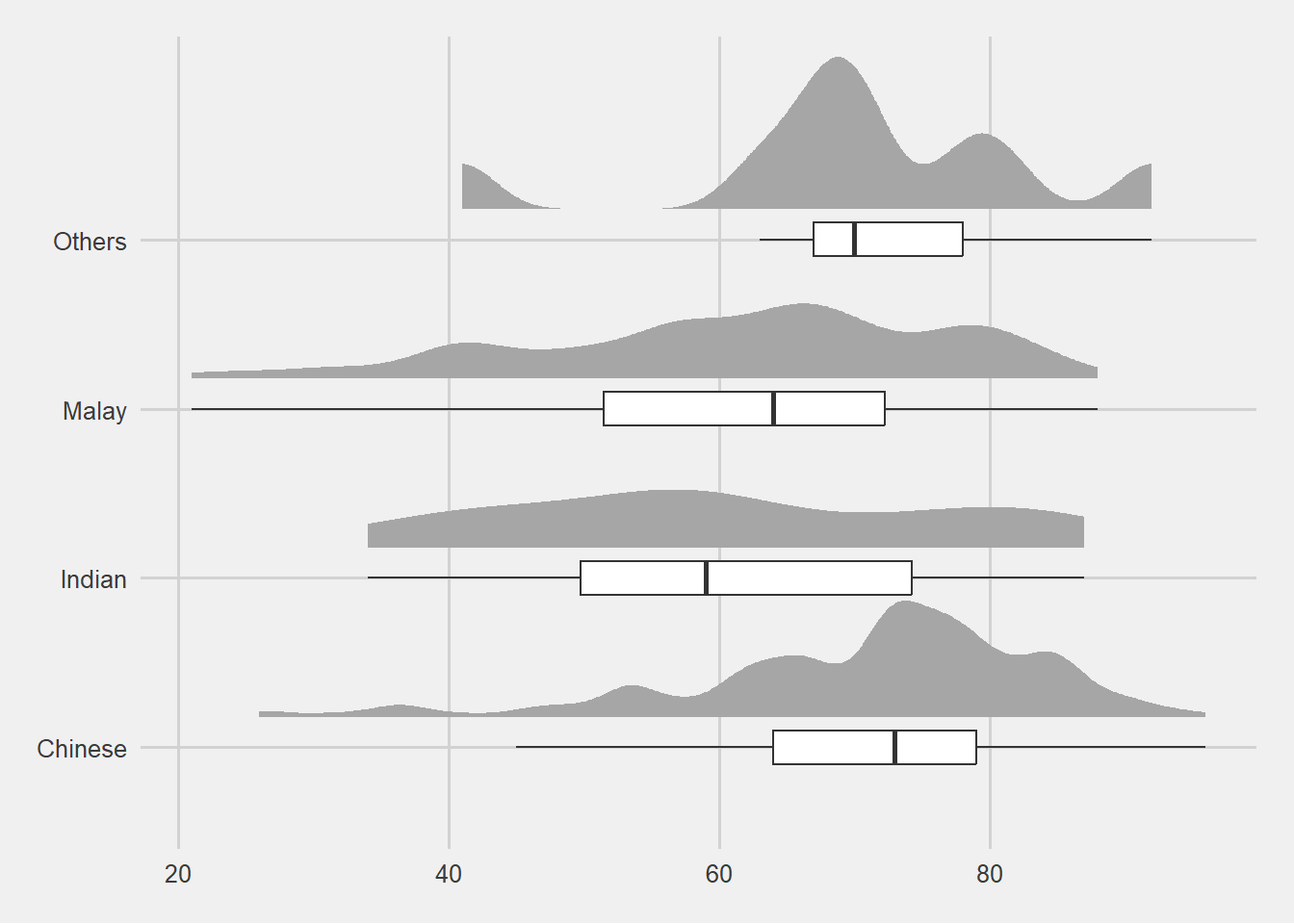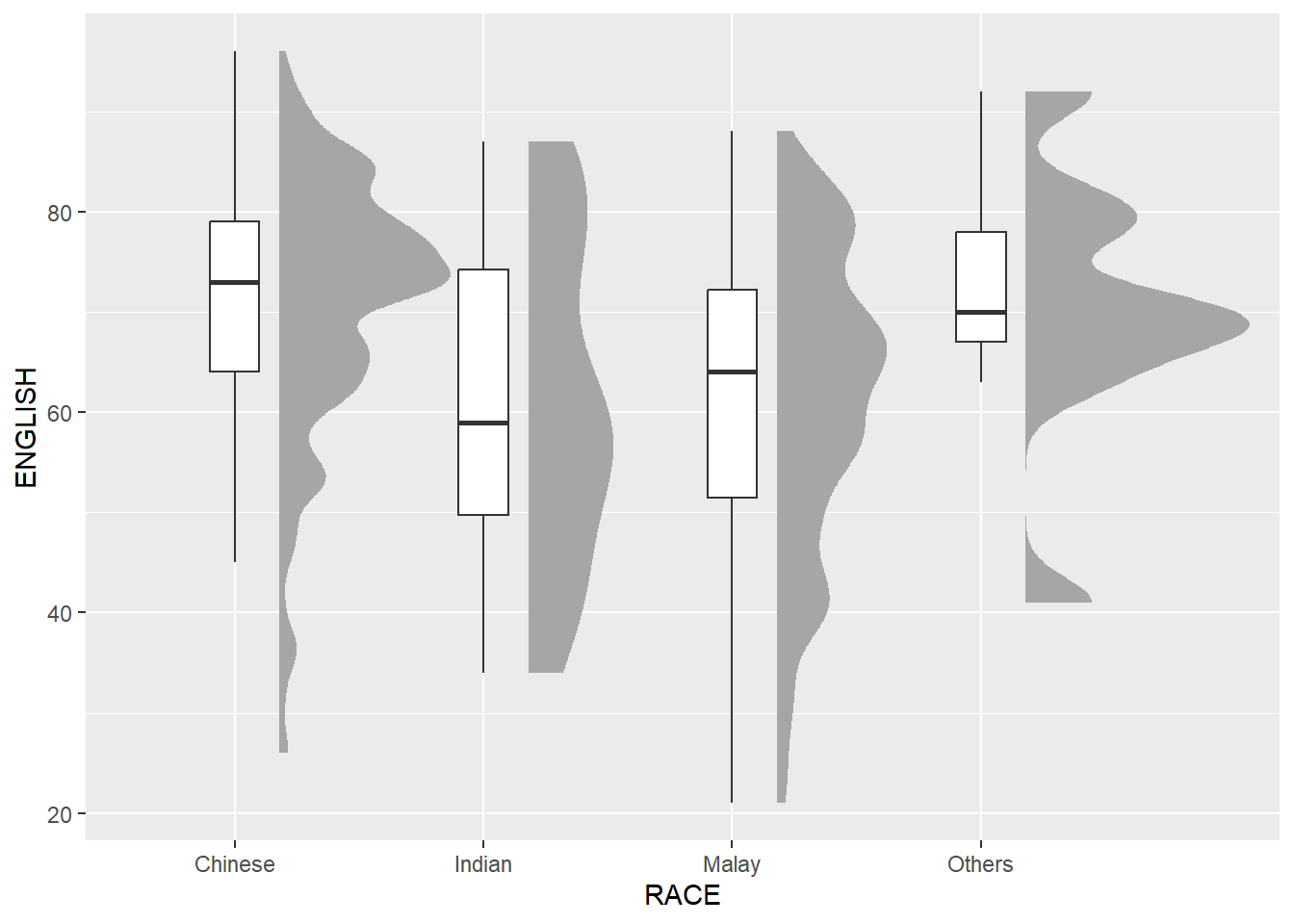 Lastly, coord_flip() of ggplot2 package will be used to flip the raincloud chart horizontally to give it the raincloud appearance. At the same time, theme_economist() of ggthemes package is used to give the raincloud chart a professional publishing standard look.