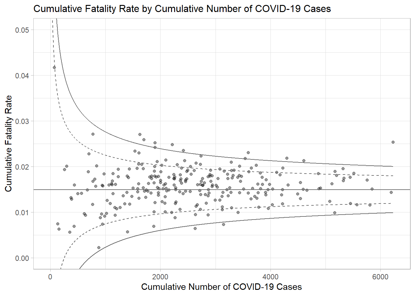 To plot the funnel plot from scratch, we need to derive cumulative death rate and standard error of cumulative death rate.