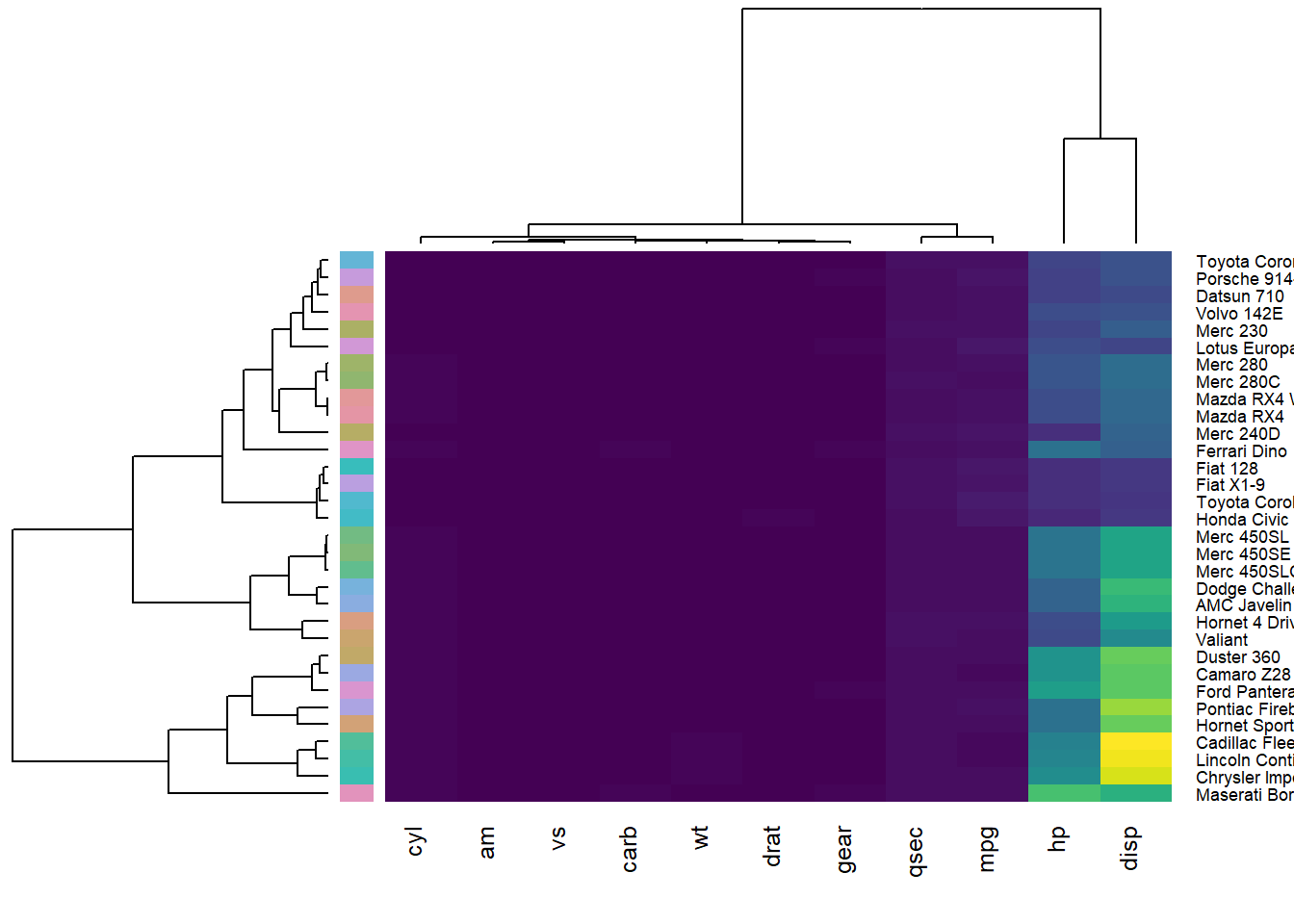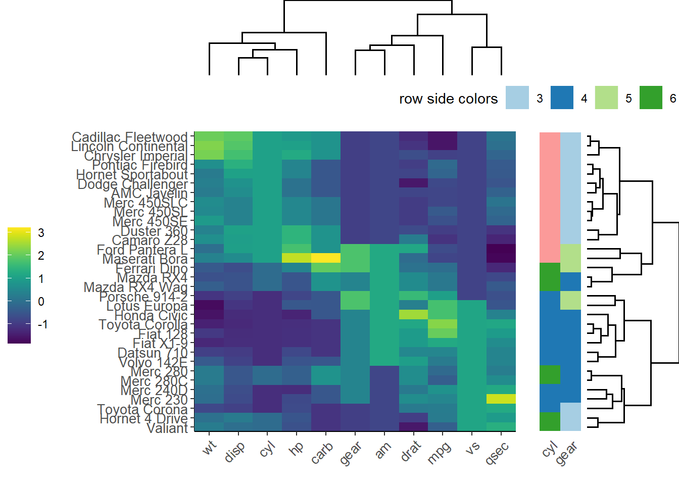 row_side_colors = mtcars[, c("cyl", "gear")]