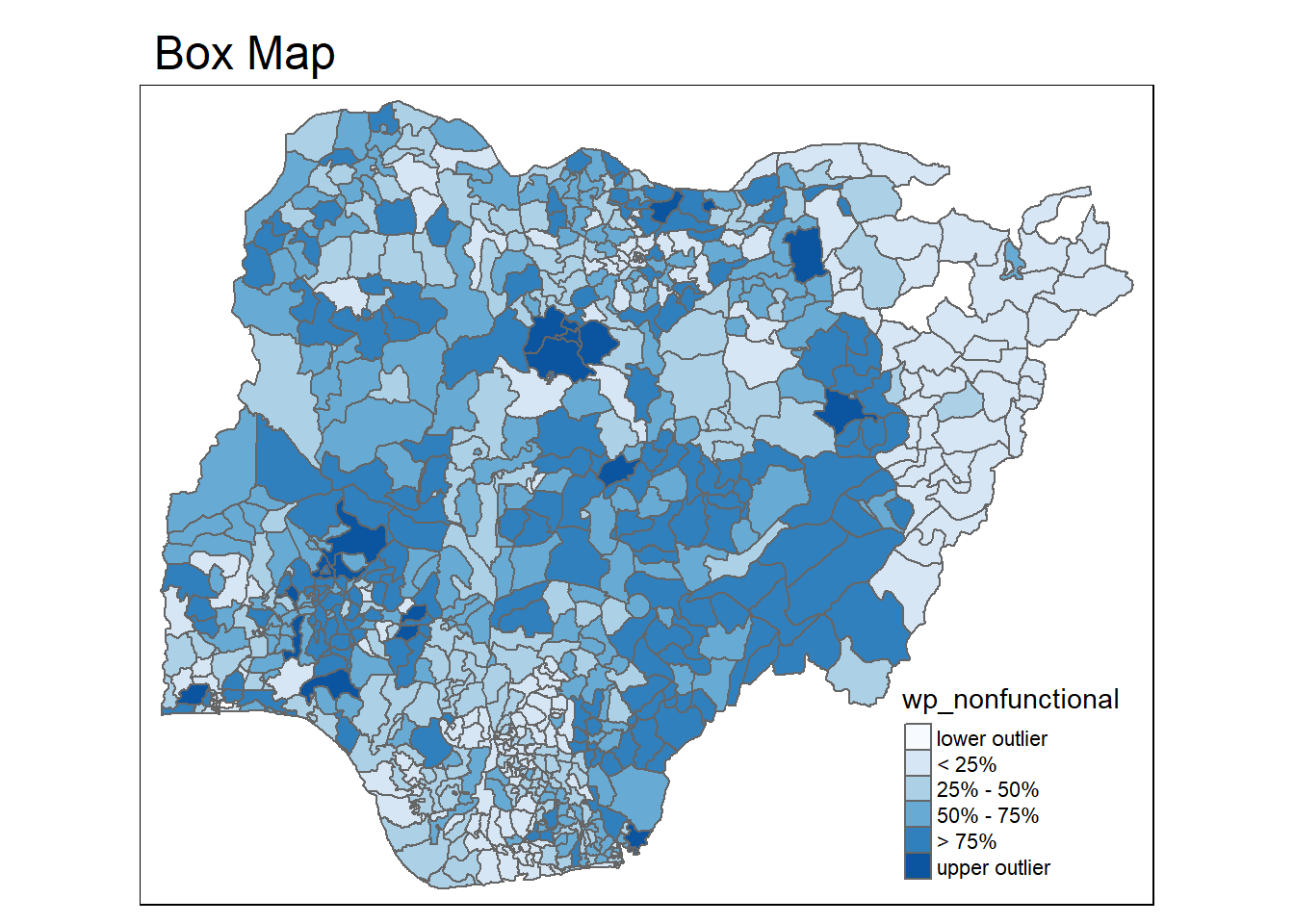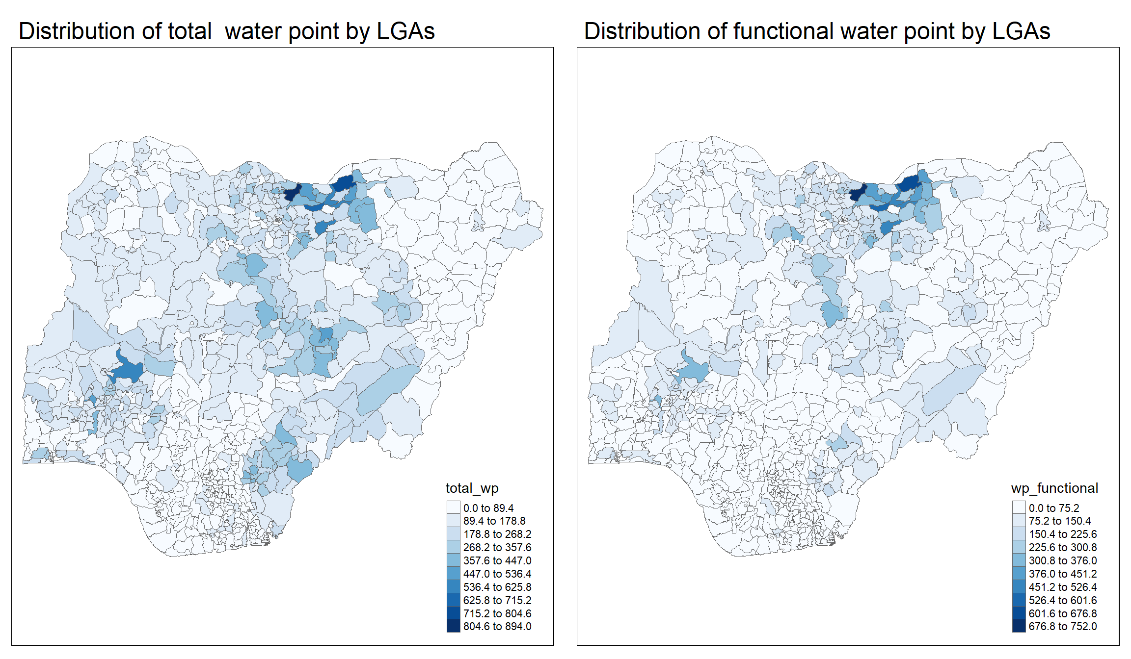 We will use the code below to plot a choropleth map showing the distribution of non functioning water points by LGA.