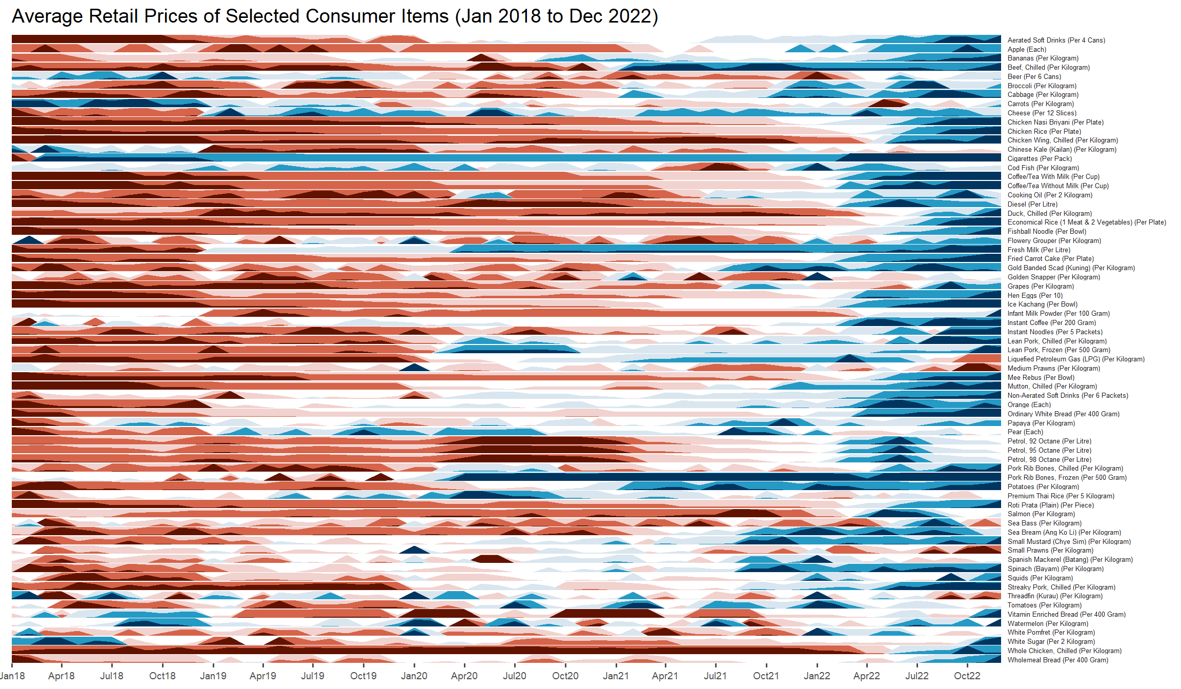ggtitle('Average Retail Prices of Selected Consumer Items (Jan 2018 to Dec 2022)')