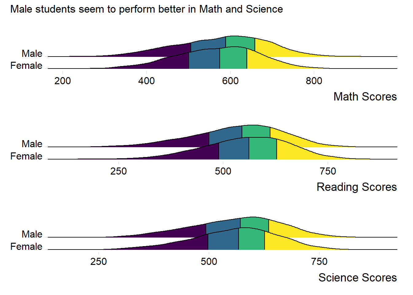 title = "Male students seem to perform better in Math and Science")